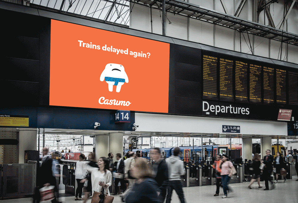 Target people where we know they will be bored, waiting for public transport. Using public data we know how long the next bus will be, if the trains are delayed, when your bag will arrive on the carousel, or how long it will take you to get to your destination. So whatever time you have to wait, the guys at Casumo will fill it with fun and make sure you’re definitely not bored.